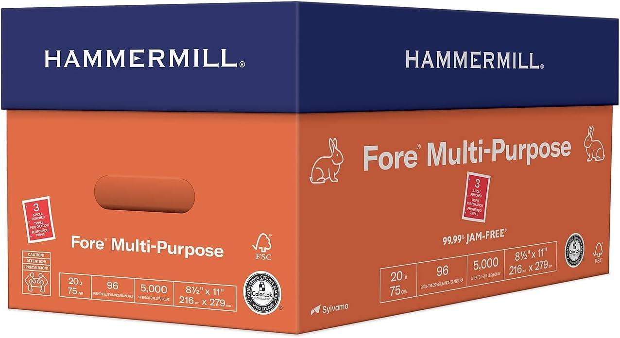 MULTI-PURPOSE COPY PAPER – Hammermill Fore Multi-Purpose 20lb Copy Paper is a high-quality option that runs well through electronic imaging equipment as well as conventional offset presses. 100% USA made to support millions of sustainable forestry jobs.