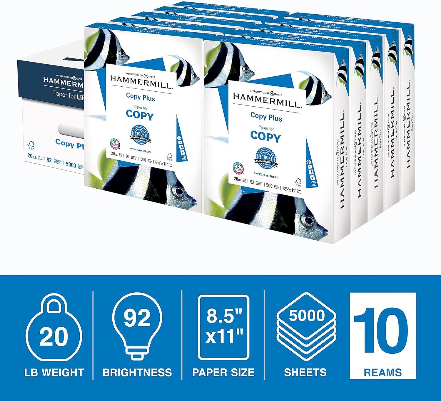 The Hammermill Paper 99.99% Jam-Free Guarantee: You will not experience more than one jam in 10,000 sheets using Hammermill copy paper on your high-speed digital printer or we will replace your Hammermill paper purchase. We test more than 13.5 million sheets of paper every year to make sure that each sheet is consistent. Then we test our papers on all kinds of printer and copier equipment to ensure that our paper will work well for you, every time, on every machine. MAKE SURE IT’S ORIGINAL HAMMERMILL QUALITY: look for “Ships from and sold by Amazon” at the top of the page, under the product title. “It’s More Than Just Paper” to us and millions of sustainable forestry workers across America, including American family tree farmers. Hammermill papers are made with renewable resources from certified sustainably managed forests. We want our business to last for generations and that means taking good care of our environment. This Hammermill copy paper is an economical paper for multipurpose print and copy use. It is available in 8.5 x 11 letter size paper. Hammermill Copy Plus is available in a single ream (500 sheets of paper) and in cases of paper-wrapped 10 reams (5,000 sheets). Choose from items listed at top of page in SIZE and STYLE NAME.