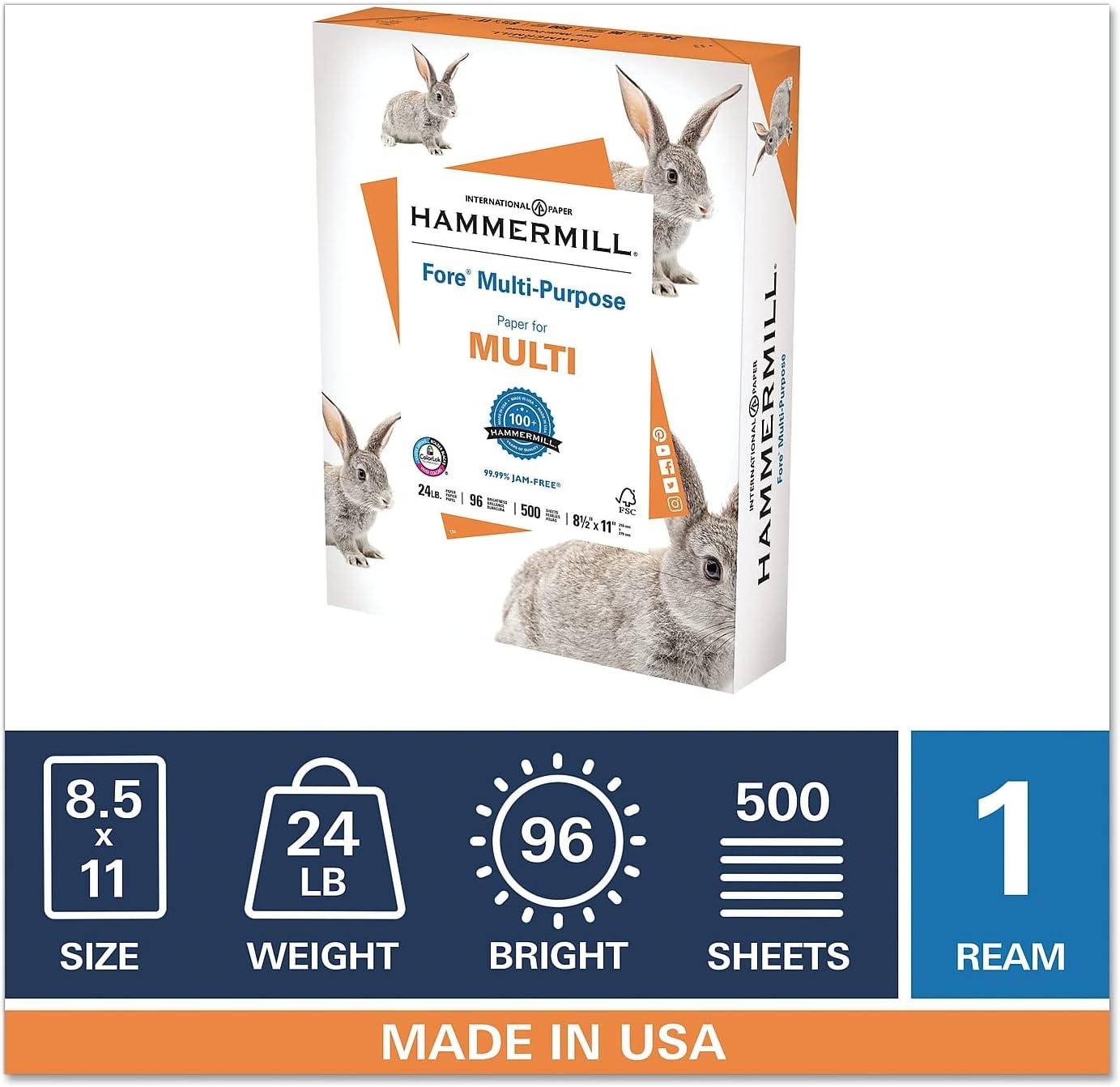 Hammermill Printer Paper, Fore Multipurpose 24 lb Copy Paper, 8.5 x 11 - 10 Ream (5,000 Sheets) - 96 Bright, Made in the USA, 103283C(1 Ream | 500 Sheets)