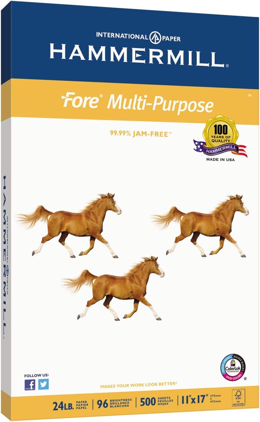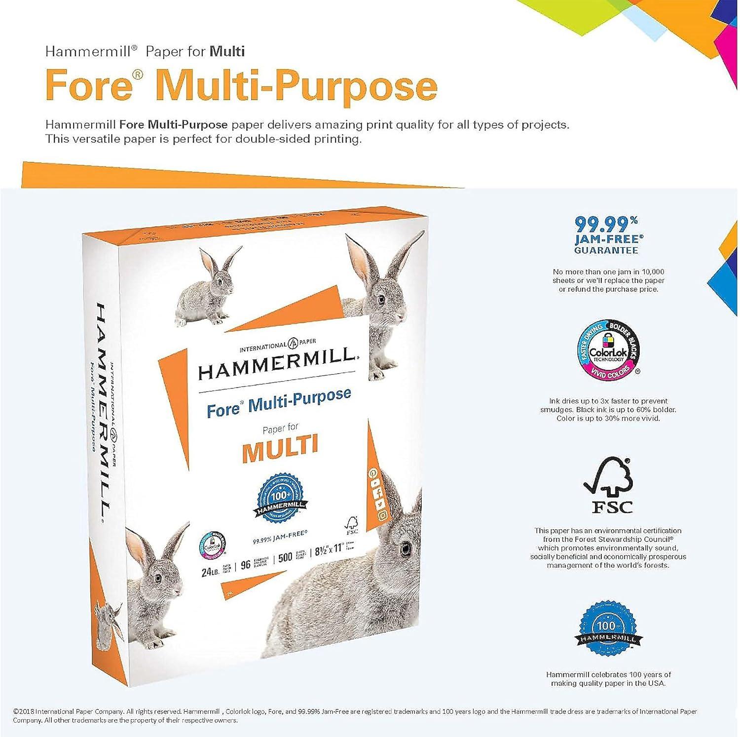 MULTIPURPOSE COPY PAPER – Hammermill Fore Multi-Purpose 24lb Copy Paper is a high-quality option that runs well through electronic imaging equipment as well as conventional offset presses. 100% USA made to support millions of sustainable forestry jobs.