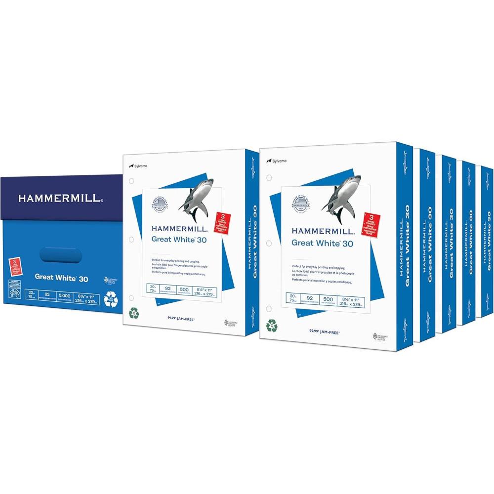 Hammermill Printer Paper, Great White 30% Recycled Paper, 8.5 x 11-1 Ream (500 Sheets) – 92 Bright, Made in the USA, 086710(5 Ream | 2500 Sheets)