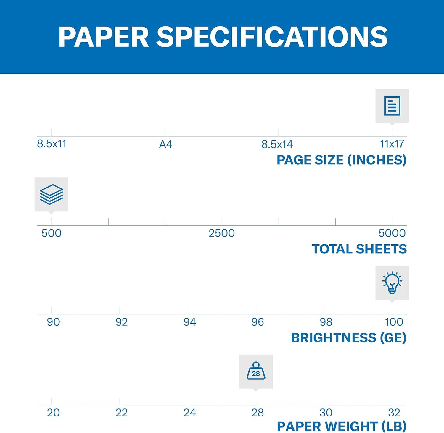 Hammermill Printer Paper, Premium Color 28 lb Copy Paper, 8.5 x 11 - 5 Ream (2,500 Sheets) - 100 Bright, Made in the USA, 102450C, White(Ledger (11x17))