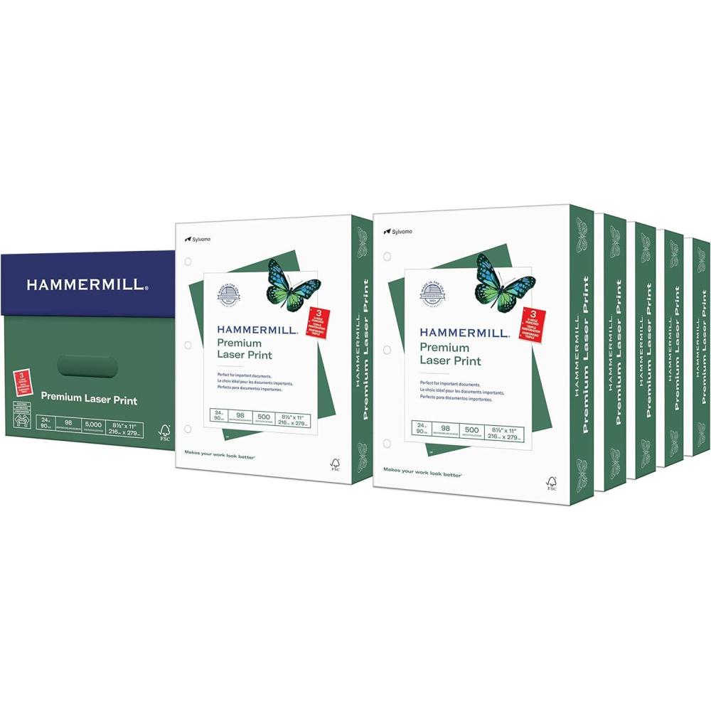 Hammermill Printer Paper, Premium Laser Print 24 lb, 8.5 x 11-5 Ream (2,500 Sheets) – 98 Bright, Made in the USA, 104640C(5 Ream | 2500 Sheets)